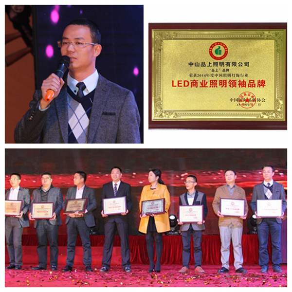頒獎典禮上,珈偉股份副總裁、品上照明副總裁劉克鋒代表品上照明領(lǐng)取獎項并發(fā)表感言。針對主持人現(xiàn)場采訪問題“2014年,品上照明對產(chǎn)品進行了全面升級和創(chuàng)新。在產(chǎn)品勢如破竹、大賺眼球的大好前提下,品上照明2015年的重點規(guī)劃是怎樣的?”劉克鋒表示,2015年是品上照明的基礎(chǔ)年,公司將全面提升軟硬實力,對外加強品牌立體化推廣,全面梳理渠道資源,夯實市場渠道根基,加強對經(jīng)銷商的服務(wù)與支持能力,幫助經(jīng)銷商提升盈利能力和持續(xù)盈利能力,引導(dǎo)他們與品上照明一起成長。對內(nèi)加強整個公司的實力提升,著力打好產(chǎn)品規(guī)劃、技術(shù)研發(fā)和服務(wù)等多方面的根基,梳理好公司的管理根基。同時,聯(lián)合珈偉股份的優(yōu)勢資源,全面提升品上平臺化能力。在市場開拓、人才培育、員工關(guān)懷等方面努力,通過建立完善的培訓(xùn)體系和品上商學(xué)院,不斷提升團隊的專業(yè)能力和綜合素質(zhì)??傊?,2015年品上照明將從多個端口發(fā)力,把經(jīng)銷商、供應(yīng)商、員工共同的品上照明平臺打造的更加穩(wěn)固,更加美好。